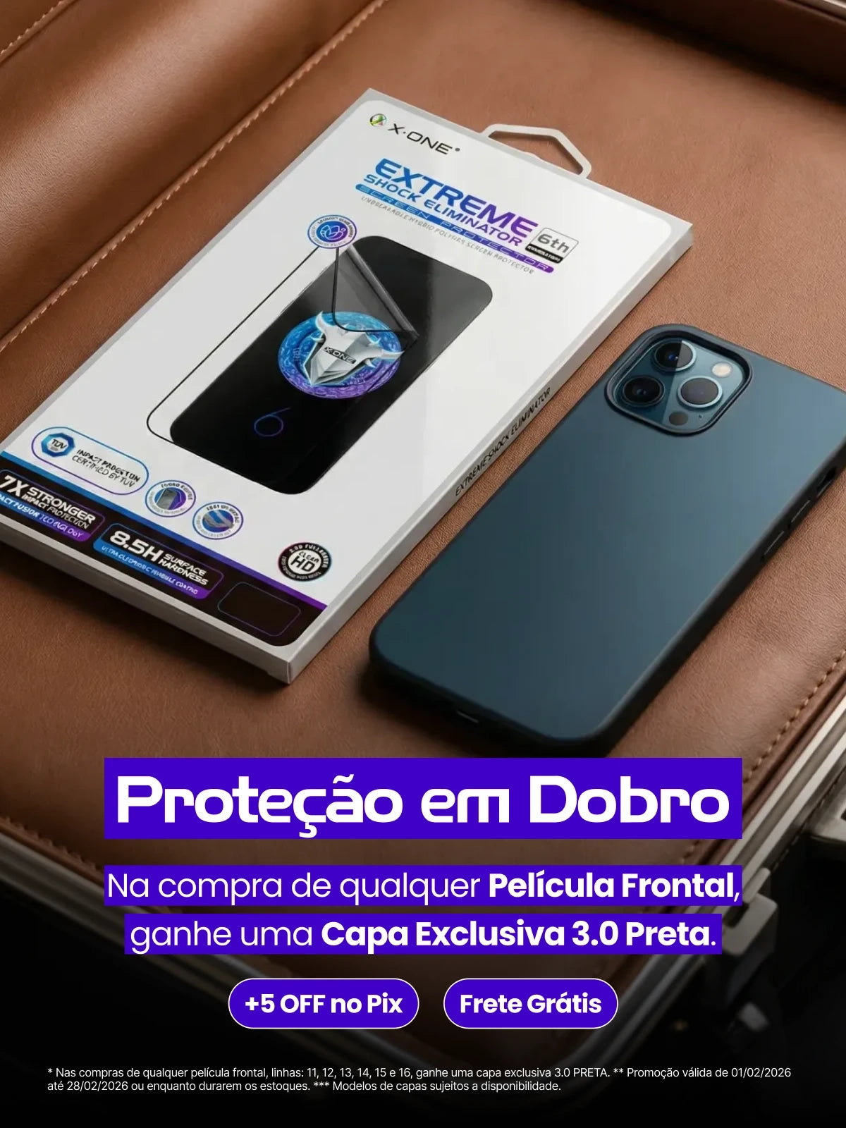 A garantia X-ONE protege seu aparelho contra quebra do vidro da tela (dianteiro ou traseiro) e da câmera, dependendo do produto adquirido. Para ativá-la, é essencial registrar sua compra em nosso site em até 3 dias úteis.
