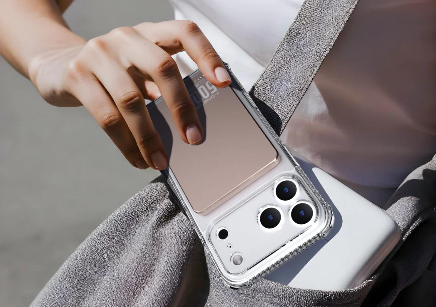 Leve e fininha, encaixa fácil no seu iPhone. Compatível com MagSafe, não pesa, não atrapalha e acompanha você em qualquer momento.