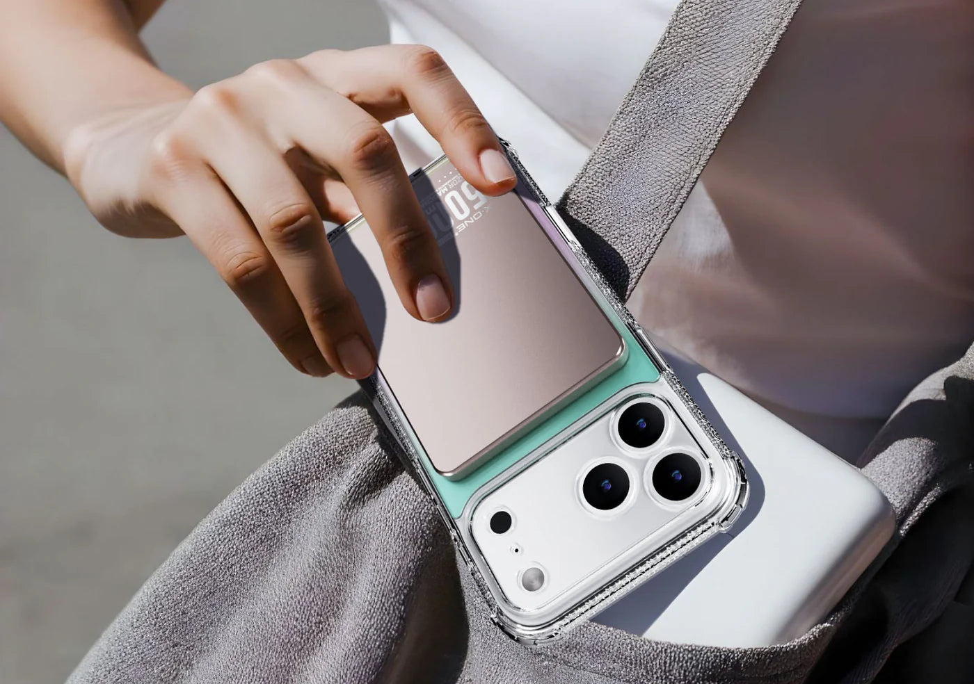 Leve e fininha, encaixa fácil no seu iPhone. Compatível com MagSafe, não pesa, não atrapalha e acompanha você em qualquer momento.