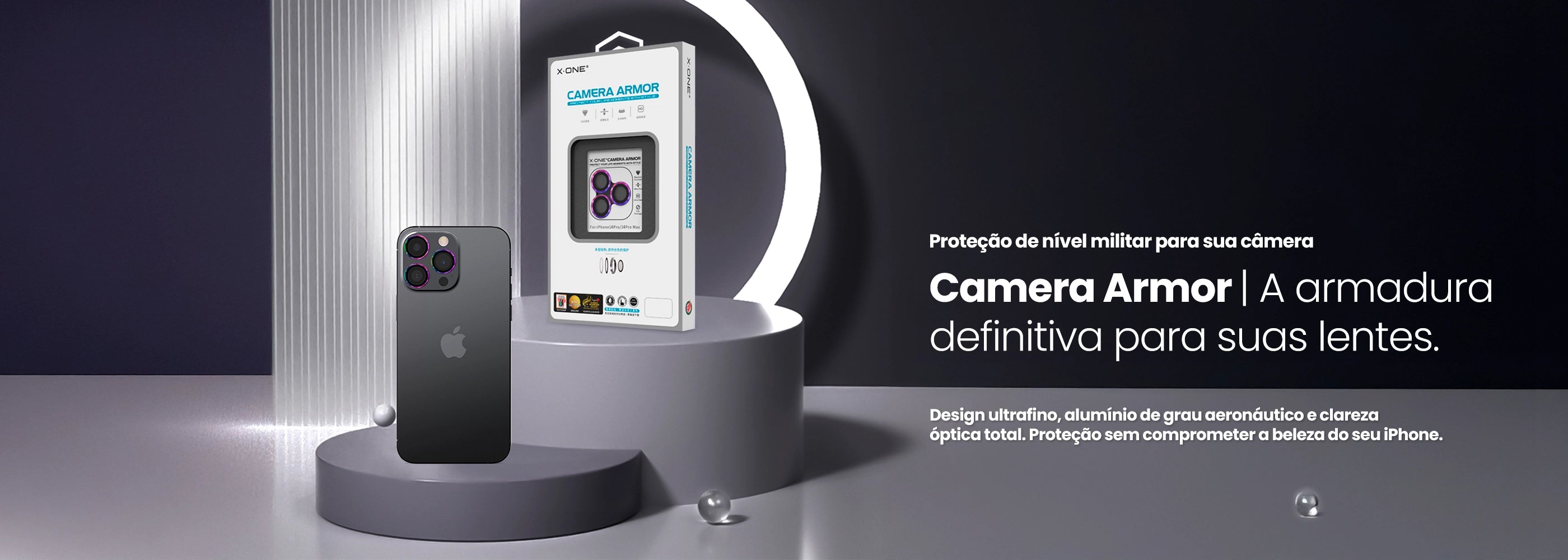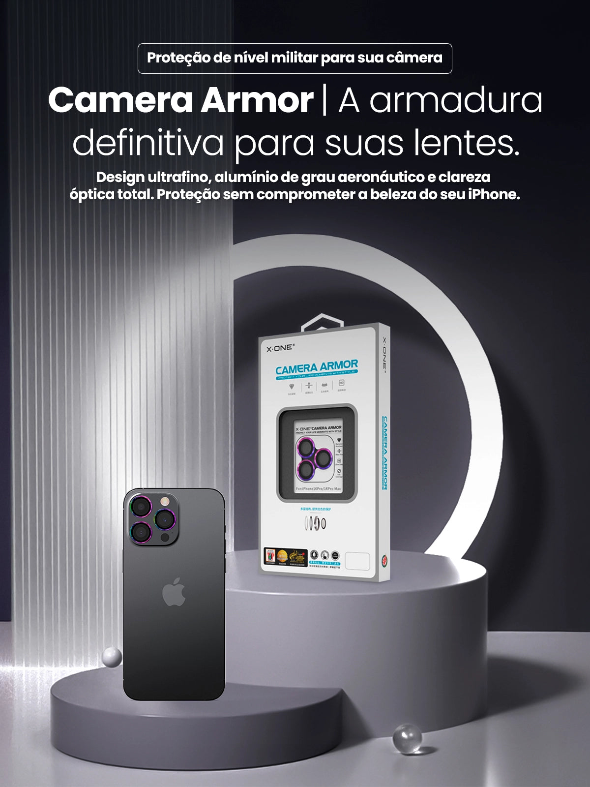 Desenvolvido especialmente para a linha iPhone, o Camera Armor X-ONE® combina materiais de engenharia e acabamento impecável para oferecer proteção, leveza e transparência em um único acessório.