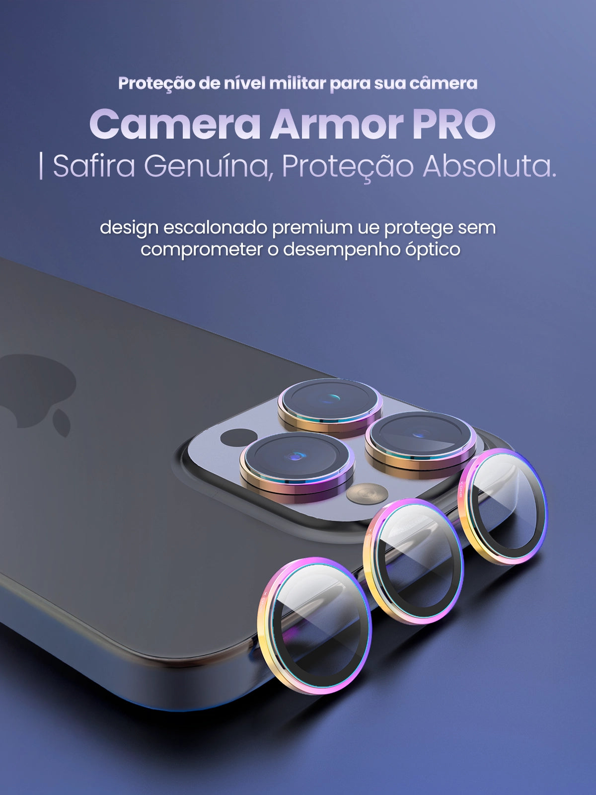 Desenvolvido especialmente para a linha iPhone, o Camera Armor PRO X-ONE® combina materiais de engenharia e acabamento impecável para oferecer proteção, leveza e transparência em um único acessório.