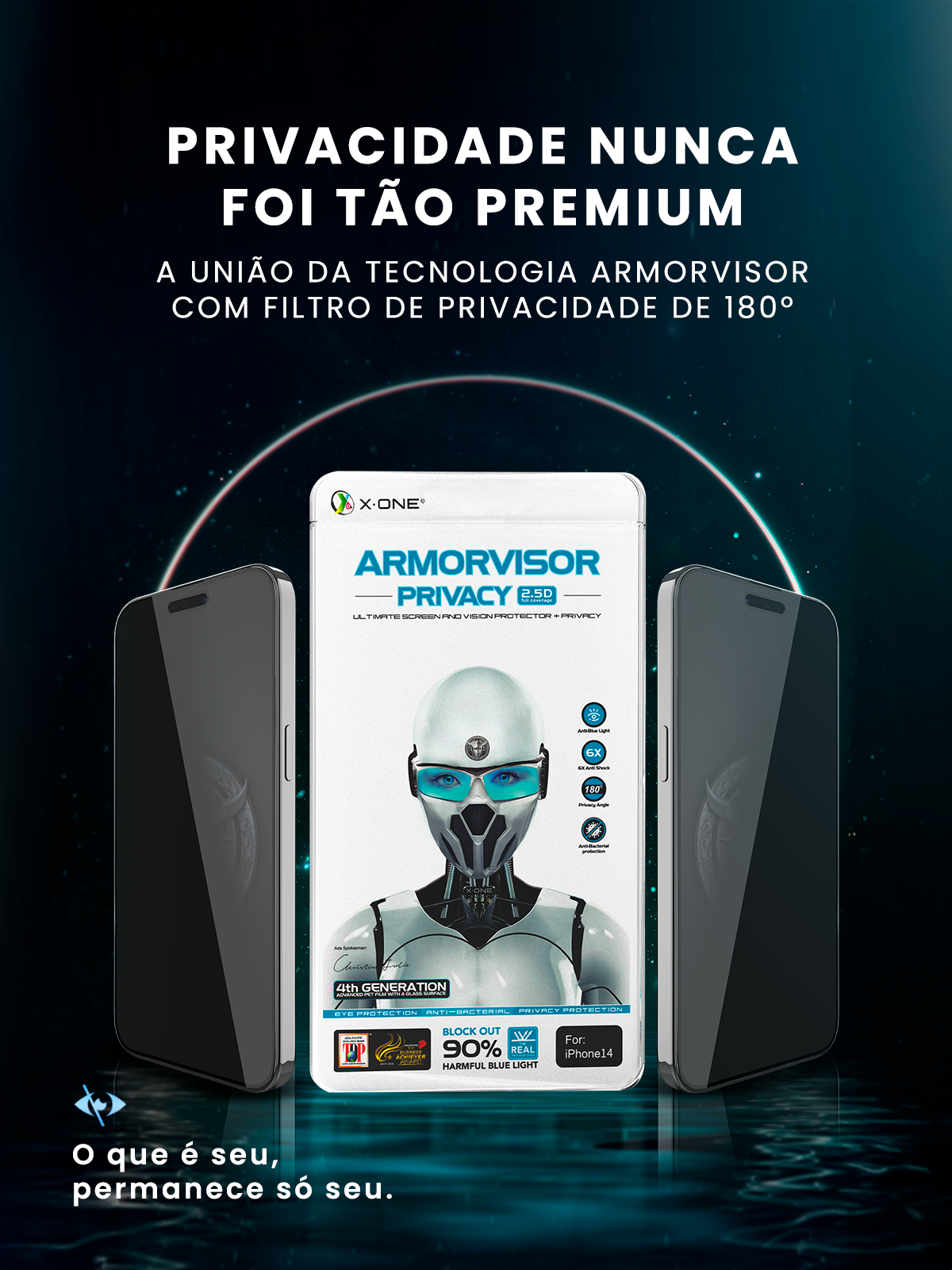 A película Armorvisor bloqueia até 90% da luz azul nociva emitida pela tela do celular, reduzindo a fadiga ocular, melhorando o sono e evitando riscos a longo prazo para sua saúde visual.